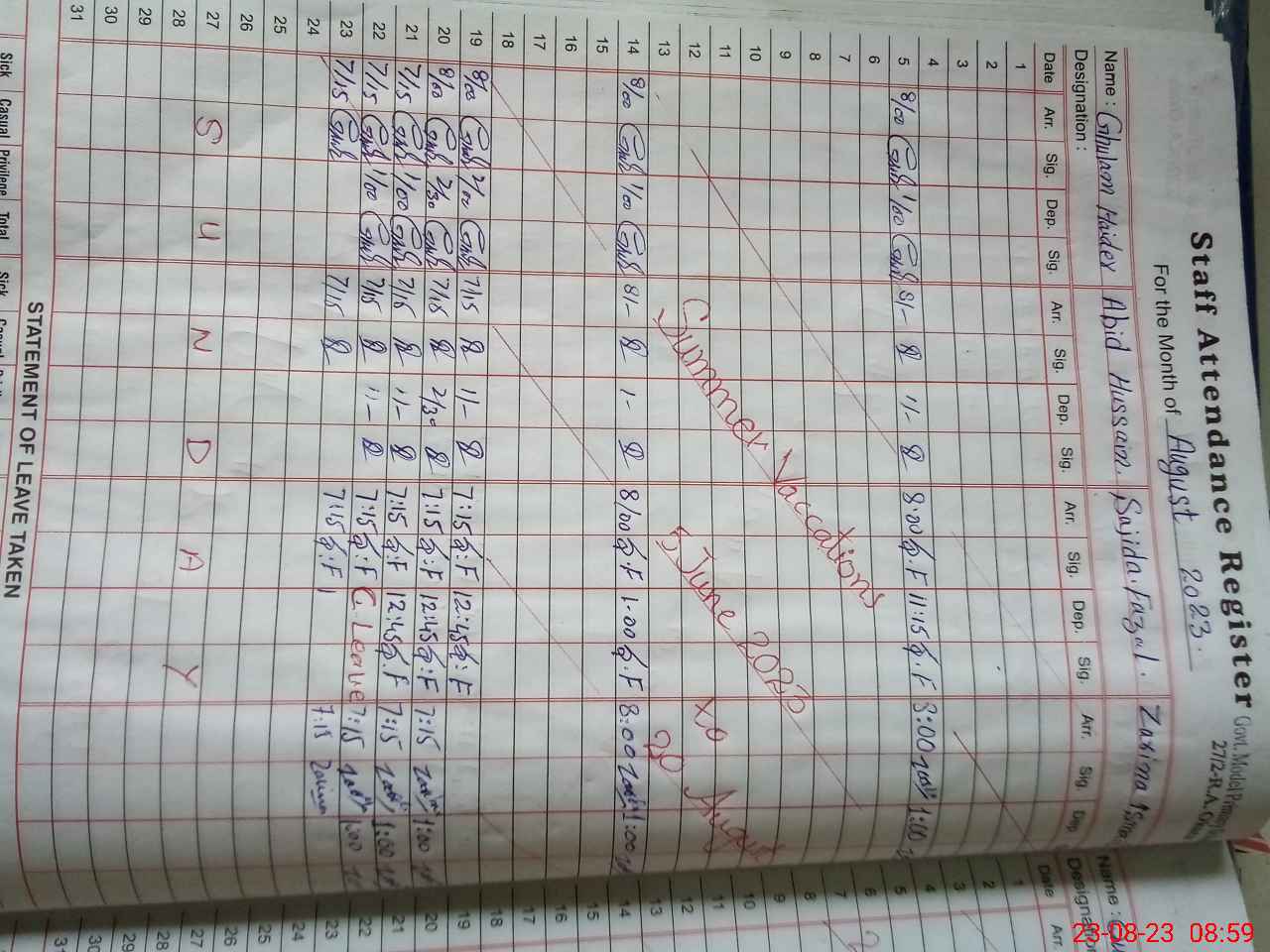 | Name: Ab**** Hu**** Designation: (School Headmaster's/Headmistress's) PST Phone/Cell Number: 03**** |