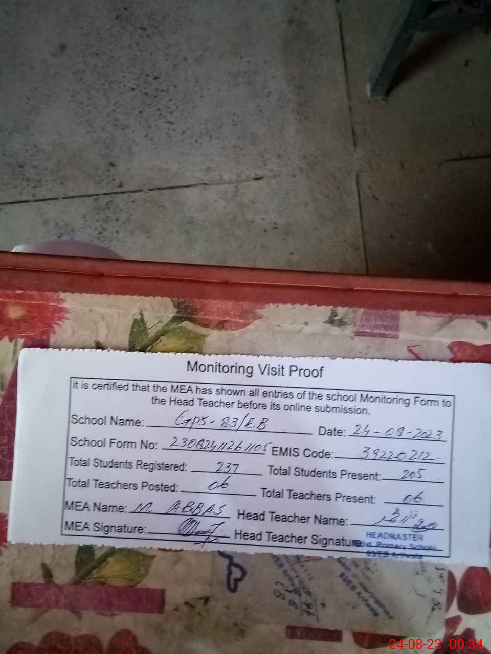 | EMIS Code: 39220212 | Name of School: GPS 83 EB | |||