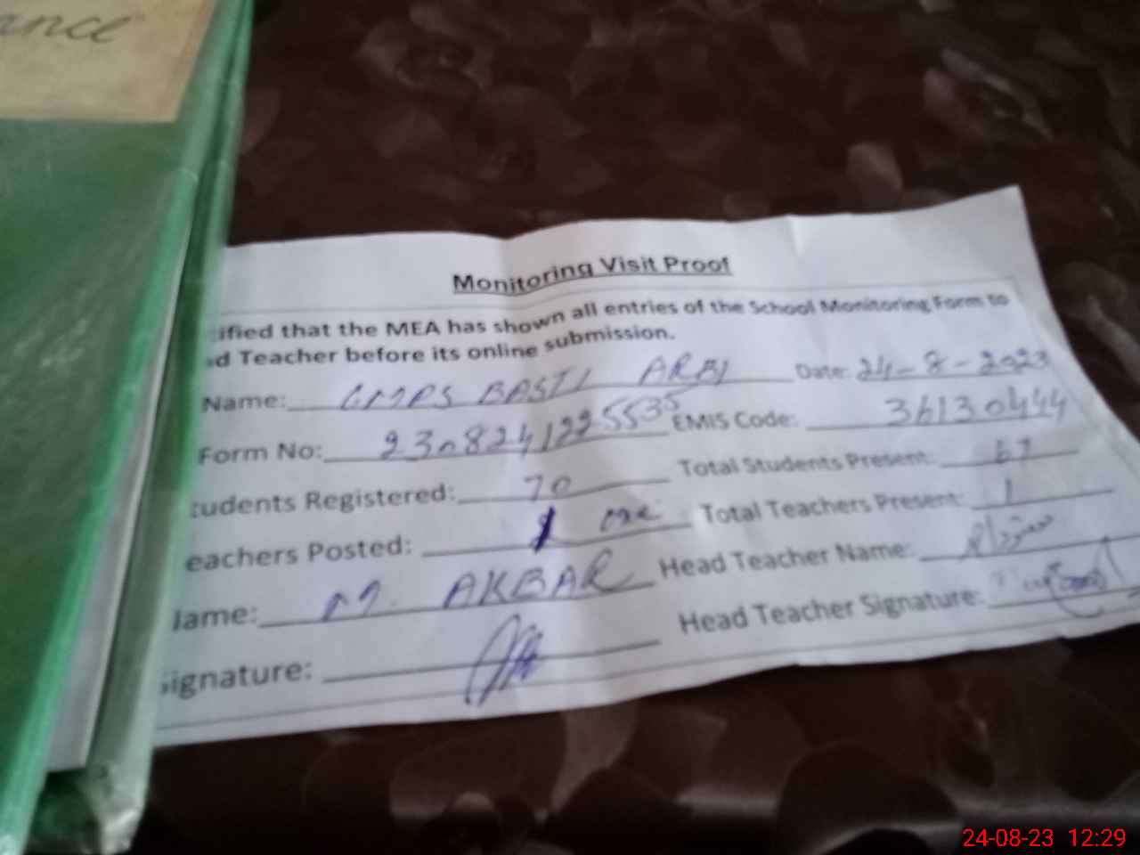 | EMIS Code: 36130444 | Name of School: GMPS BASTI ARBI MUKHDOOM RASHED | |||