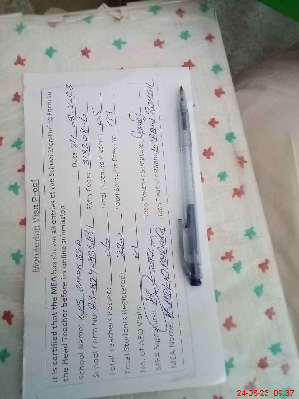 | EMIS Code: 31320806 | Name of School: GPS CHAK 32/A | |||