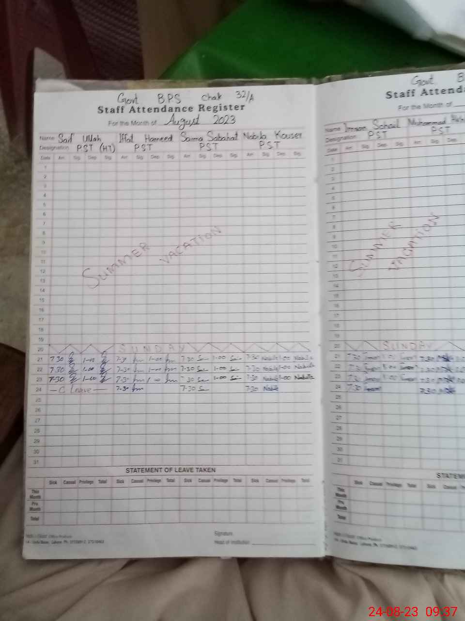 | Name: SA**** UL**** Designation: (School Headmaster's/Headmistress's) PST Phone/Cell Number: 03**** |