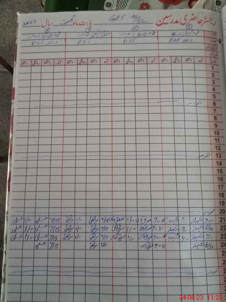 | CNIC | Full Name | Designation | R/C | Absence During Last Calender Month |