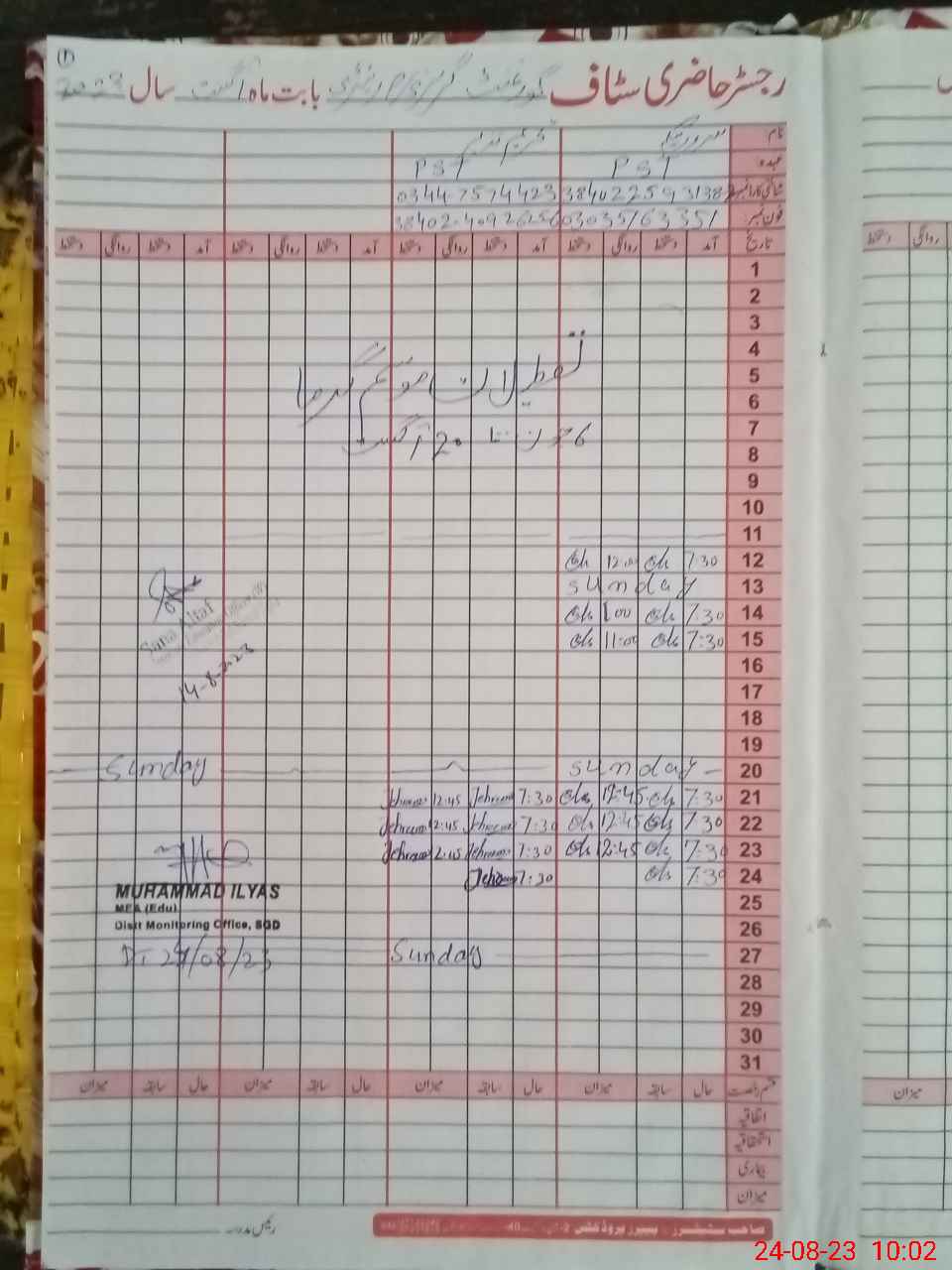| Name: SA**** BE**** Designation: (School Headmaster's/Headmistress's) PST Phone/Cell Number: 03**** |