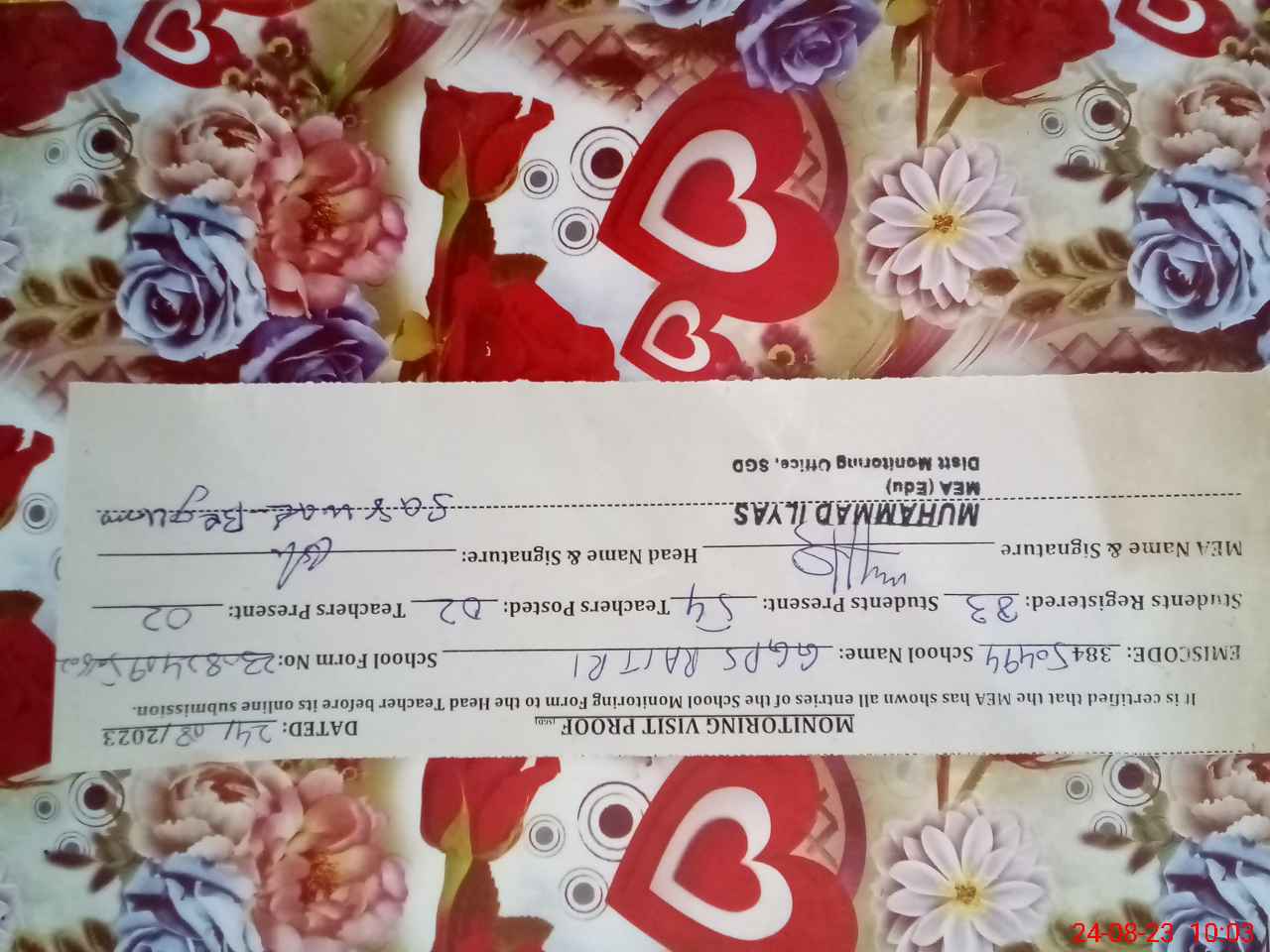| Certified that this School was Inspected by the Undersigned MEA/DMO Today and the Information Stated Above is as Per Record. | |||||