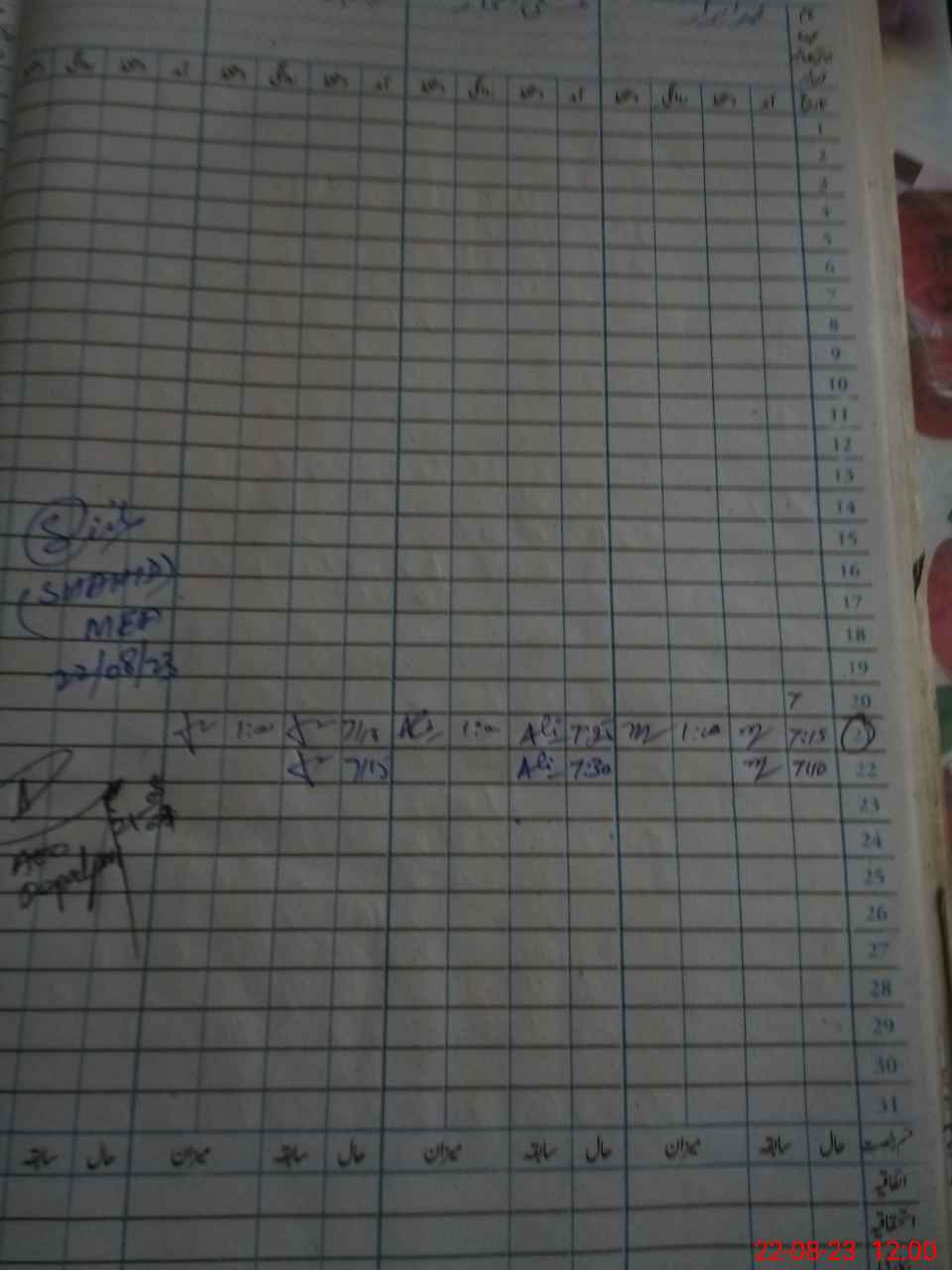 | CNIC | Full Name | Designation | R/C | Absence during last cal. month |