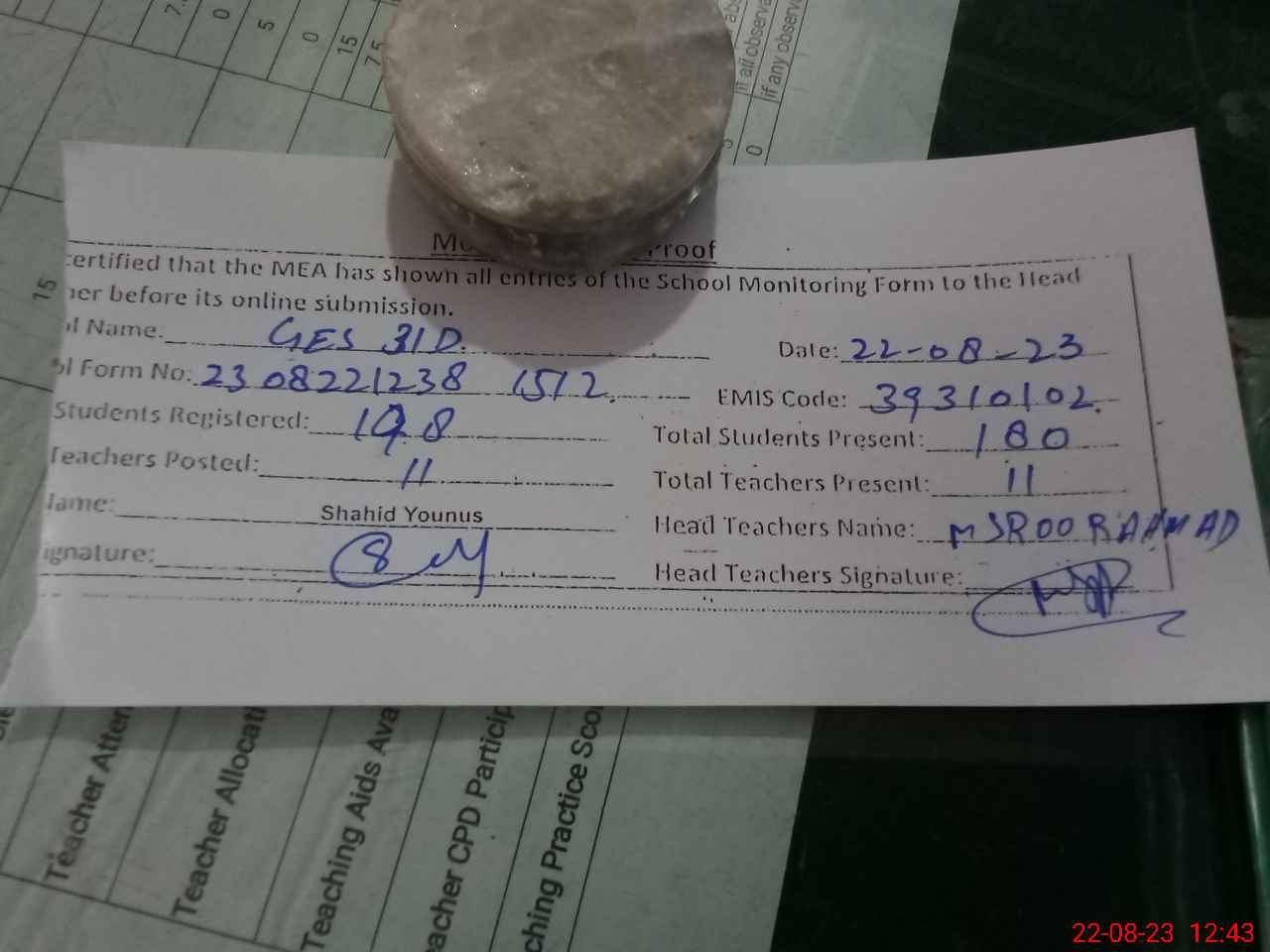 | Attendance Register | Head Teacher | MEA with School | Visit Proof |