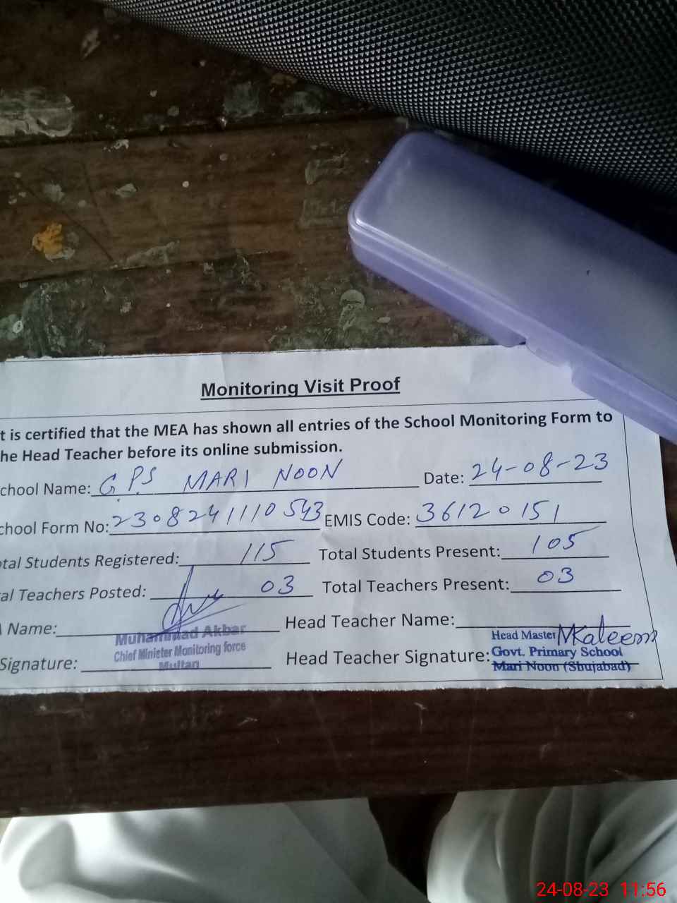 | EMIS Code: 36120151 | Name of School: GPS MARI NOON TAIL FAIZ PUR | |||