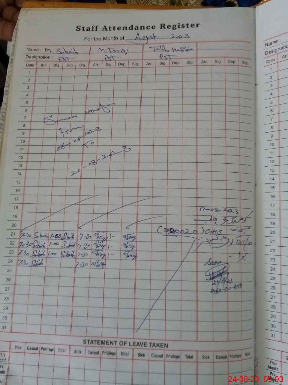 | CNIC | Full Name | Designation | R/C | Absence During Last Calender Month |