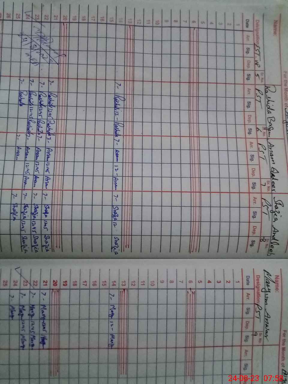 | CNIC | Full Name | Designation | R/C | Absence During Last Calender Month |