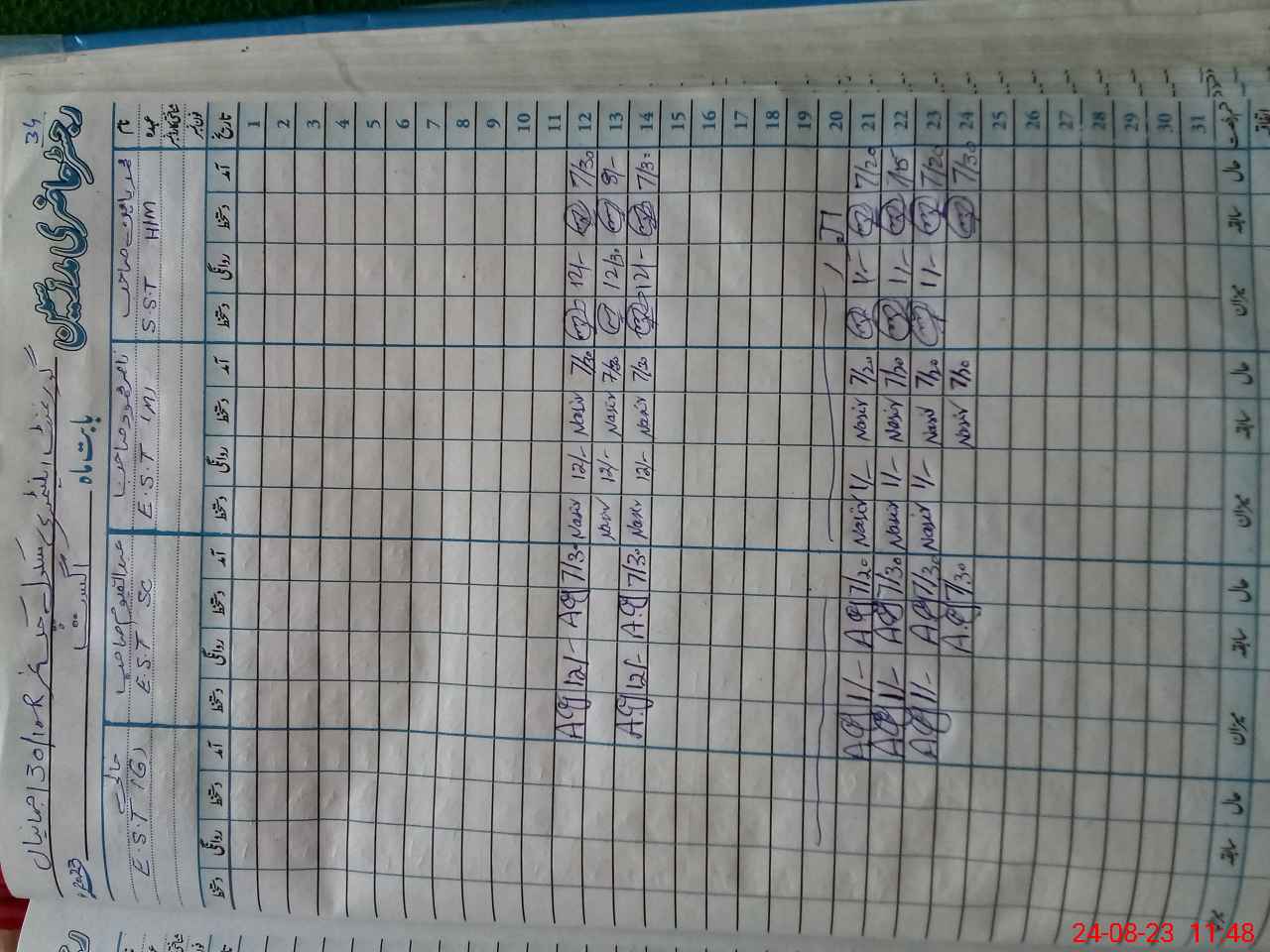 | CNIC | Full Name | Designation | R/C | Absence During Last Calender Month |
