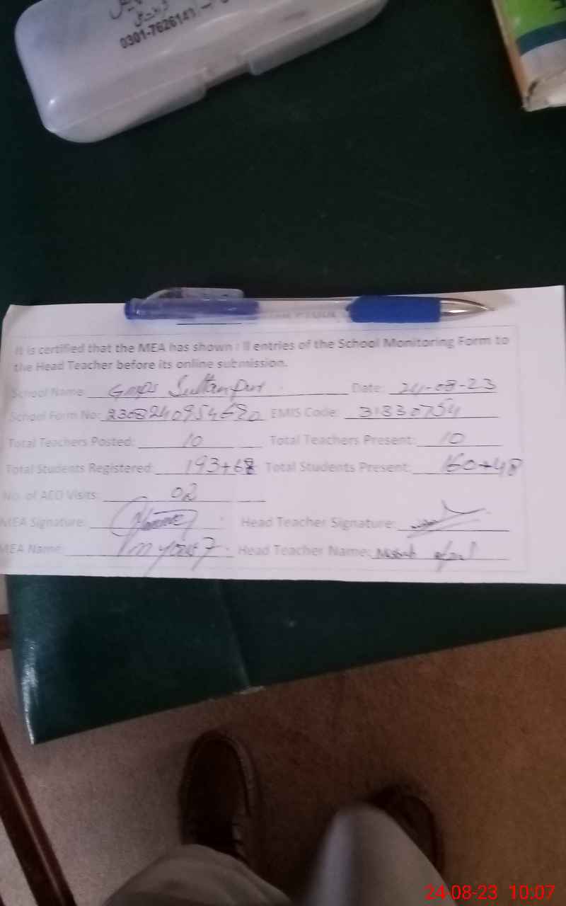 | EMIS Code: 31330754 | Name of School: GMPS SULTAN PUR | |||