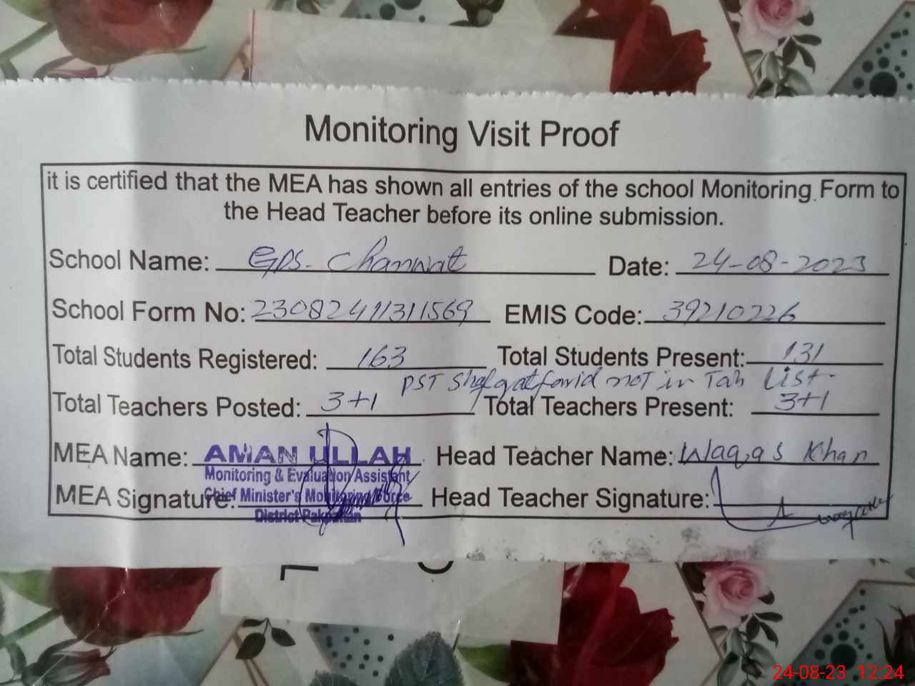 | EMIS Code: 39210226 | Name of School: GPS CHANWAT | |||