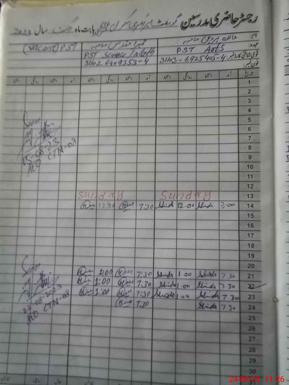 | Name: Ab**** Pa**** Designation: (School Headmaster's/Headmistress's) PST Phone/Cell Number: 03**** |