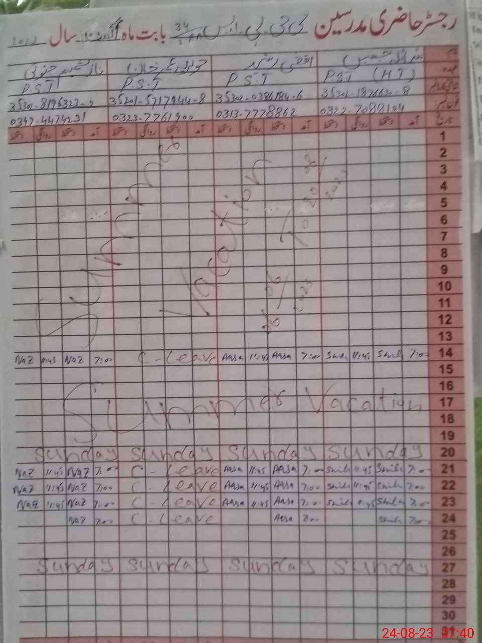 | 35**** | Ja**** Um**** Kh**** | PST | Regular | 0 | 0 | 0 | 0 | 0 | 0 | 0 | 0 | 0 | Absent (Un-Authorized) |