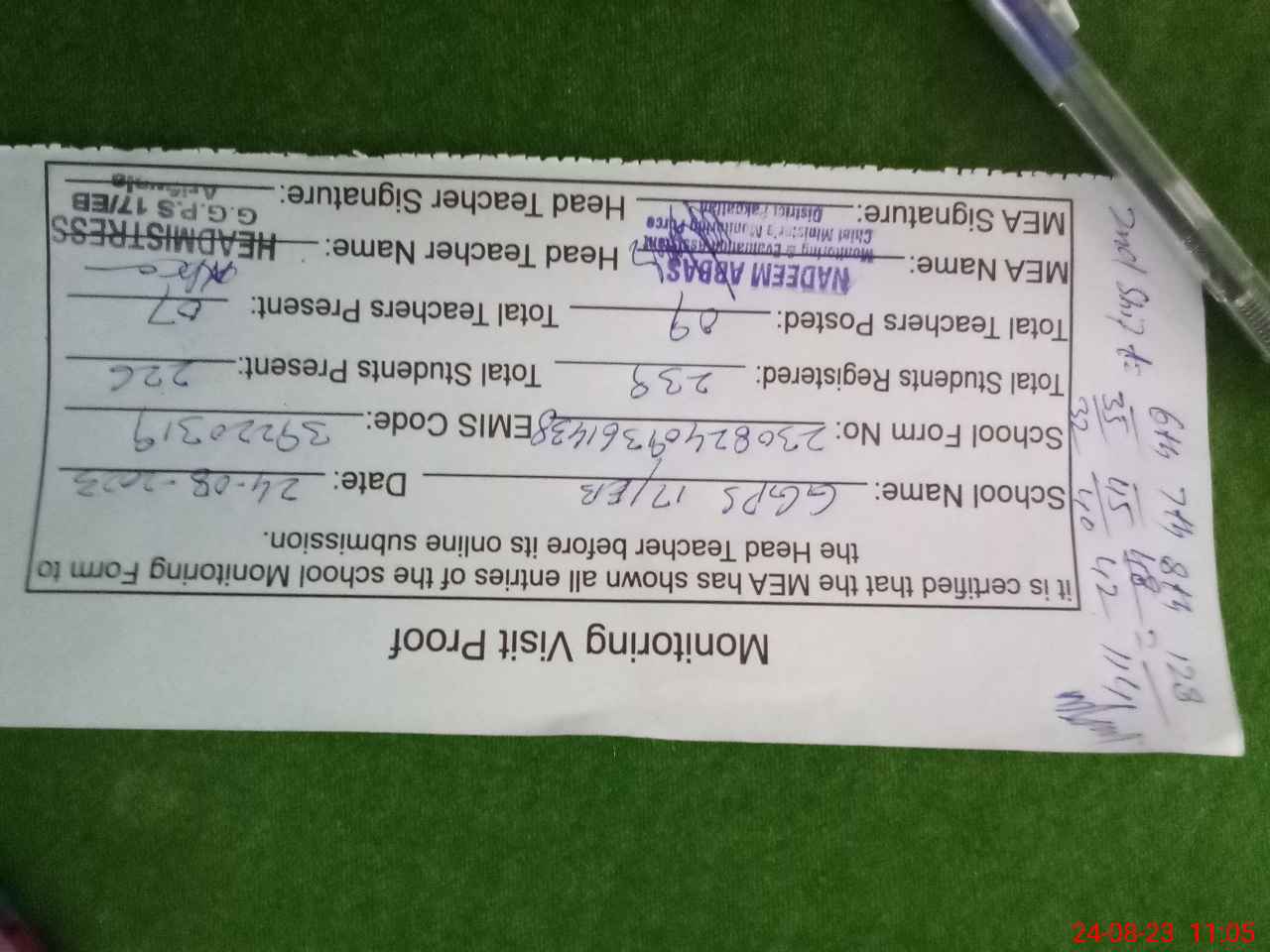 | Name: NA**** MU**** Designation: (School Headmaster's/Headmistress's) PST Phone/Cell Number: 03**** |