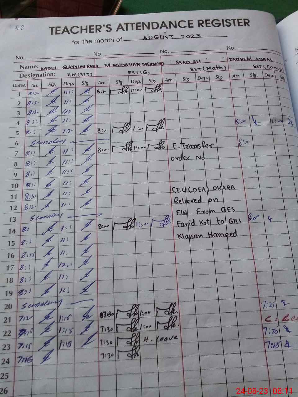 | Name: RA**** AB**** QA**** Designation: (School Headmaster's/Headmistress's) HEADMASTER Phone/Cell Number: 03**** |
