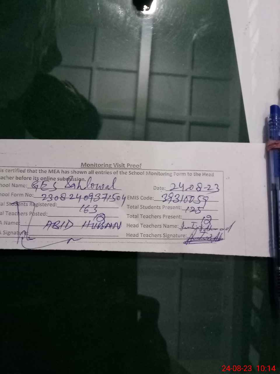 | EMIS Code: 39310059 | Name of School: GES SAHLOWAL | |||