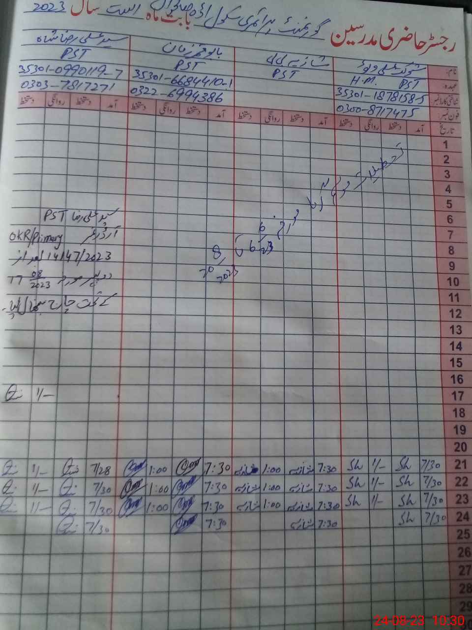 | Remarks (Use Separate Page if Required): Mr Babu qamar Zaman PST and Mr Syed Ali Raza PST new transferred in school but data not shown till date | |||||