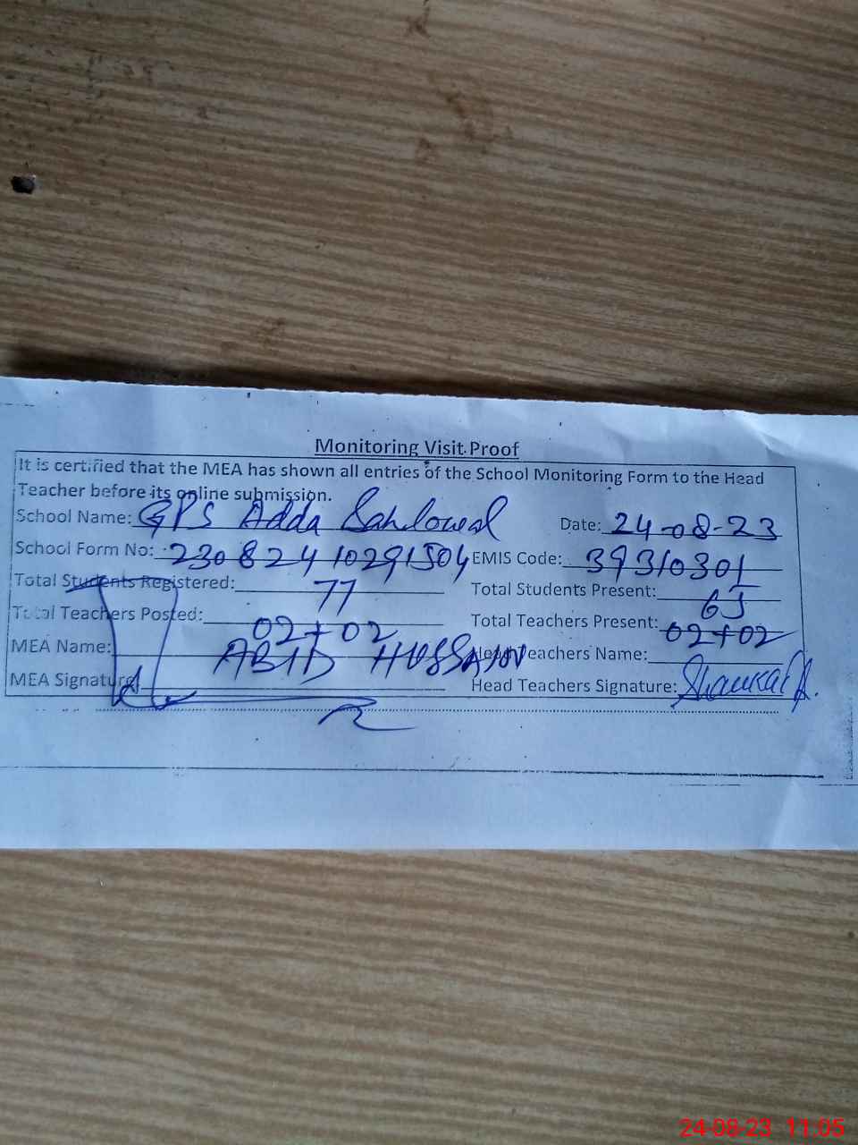 | EMIS Code: 39310301 | Name of School: GPS ADDA SAHLOWAL | |||