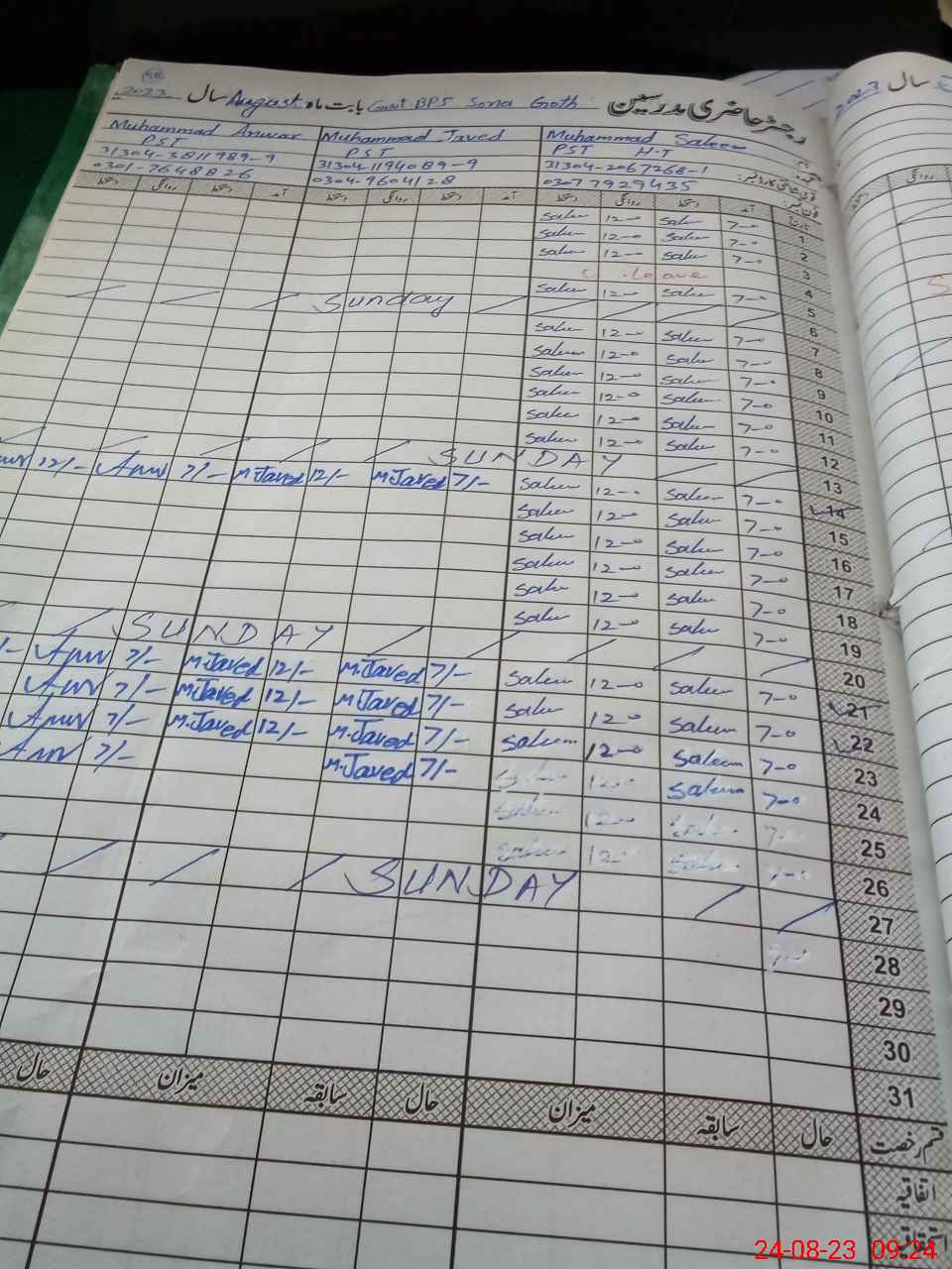 | 31**** | Mu**** Hu**** | PST | Regular | 0 | 0 | 0 | 0 | 0 | 0 | 0 | 0 | 0 | Casual |