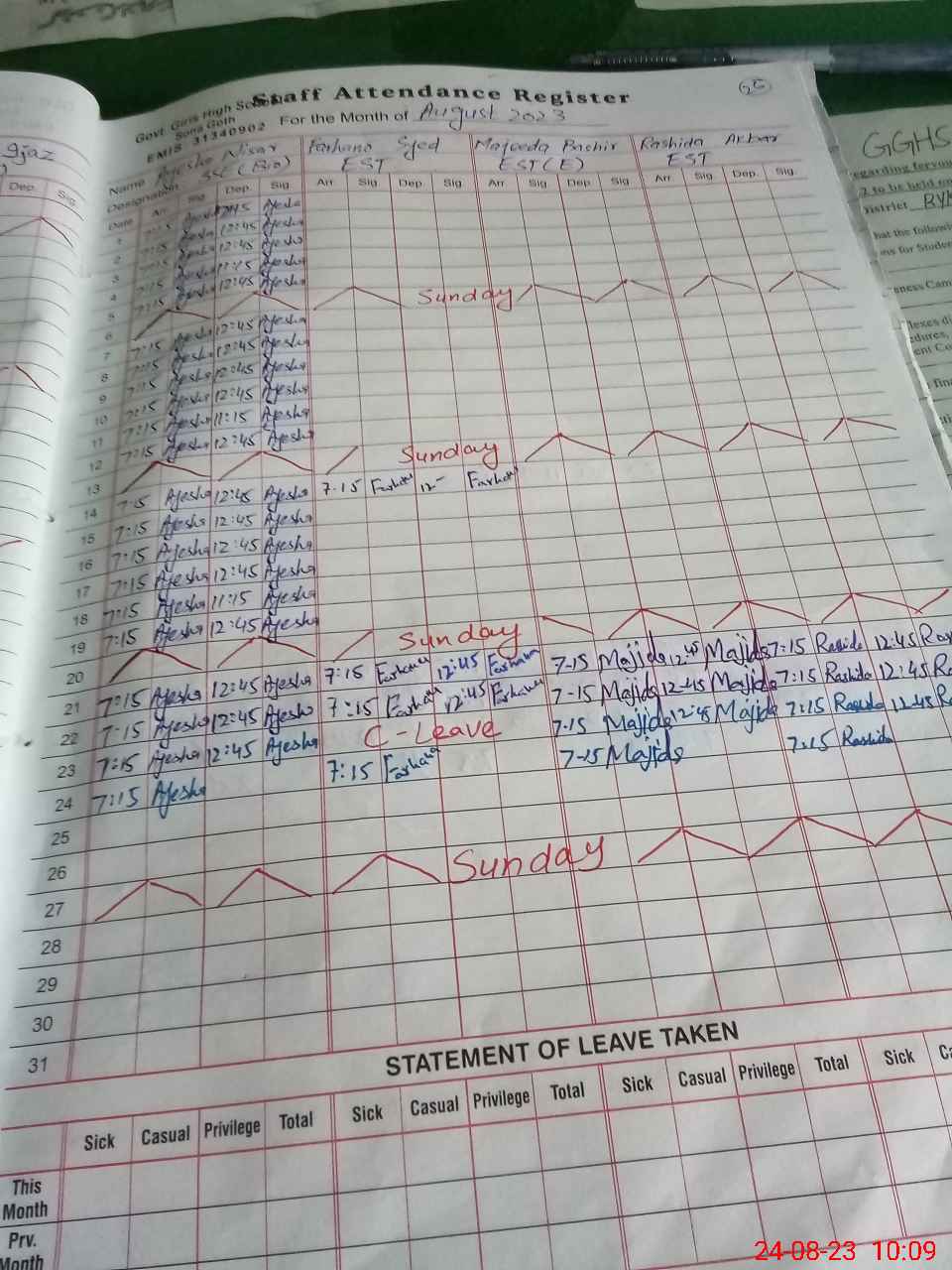 | 31**** | Ab**** Ja**** | PST | Regular | 0 | 0 | 0 | 0 | 0 | 0 | 0 | 0 | 0 | Casual |