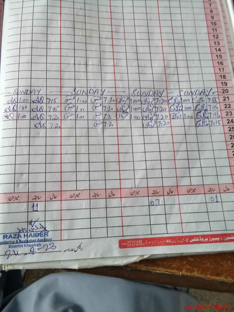 | CNIC | Full Name | Designation | R/C | Absence During Last Calender Month |