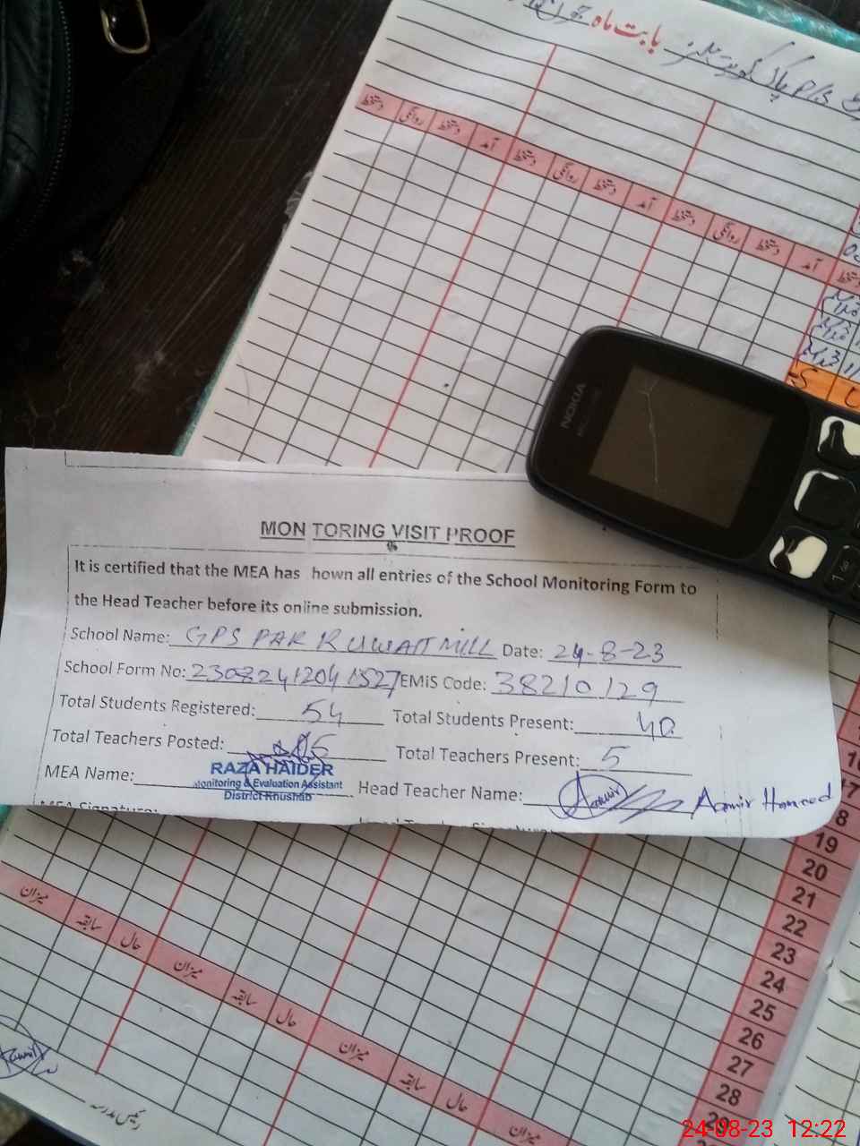 | EMIS Code: 38210129 | Name of School: GPS PAK KUWAIT MILLS KHUSHAB | |||