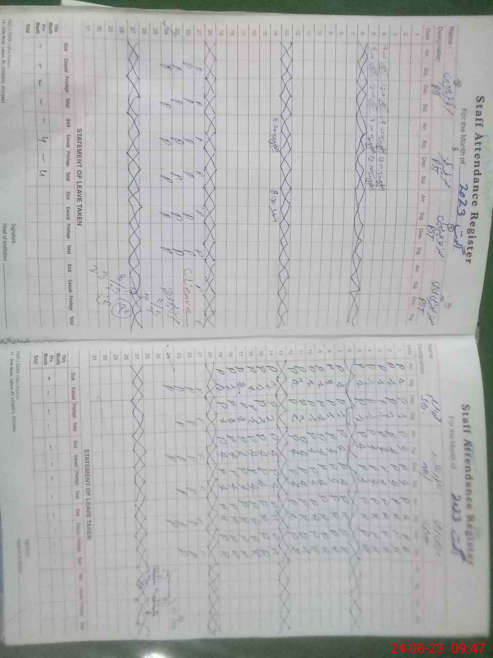| CNIC | Full Name | Designation | R/C | Absence During Last Calender Month |