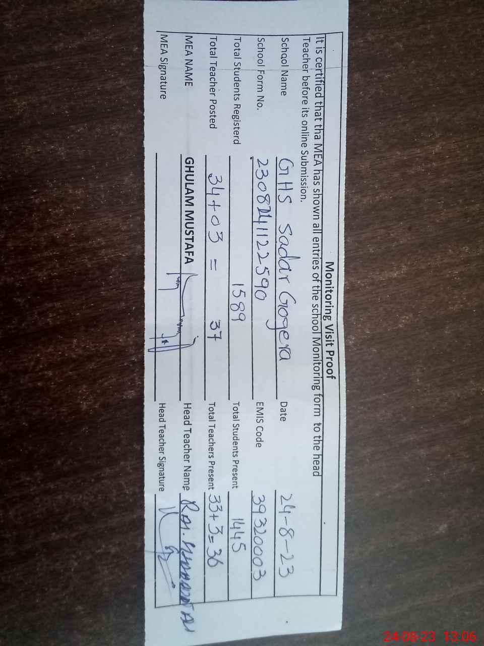 | EMIS Code: 39320003 | Name of School: GHS SADAR GOGERA | |||