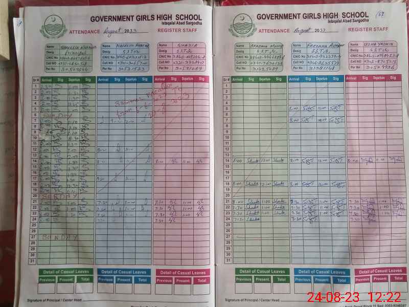 | CNIC | Full Name | Designation | R/C | Absence During Last Calender Month |