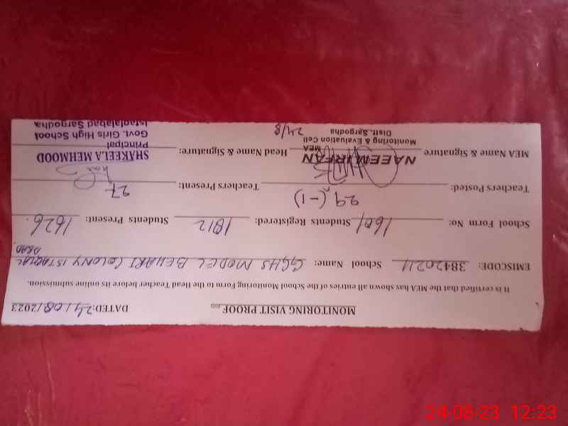 | Attendance Register | Head Teacher | MEA with School | Visit Proof |