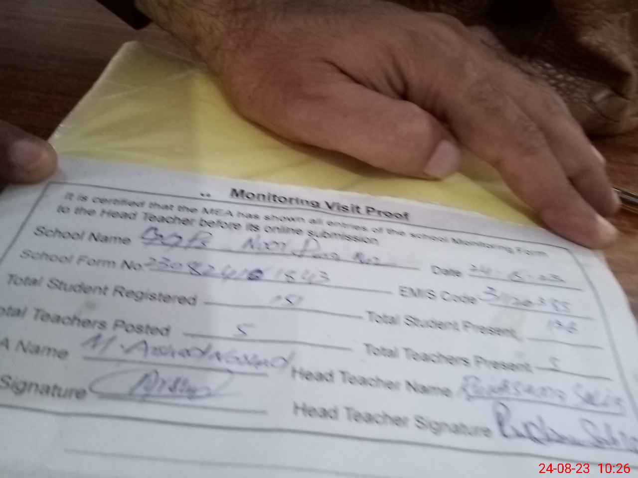 | Attendance Register | Head Teacher | MEA with School | Visit Proof |