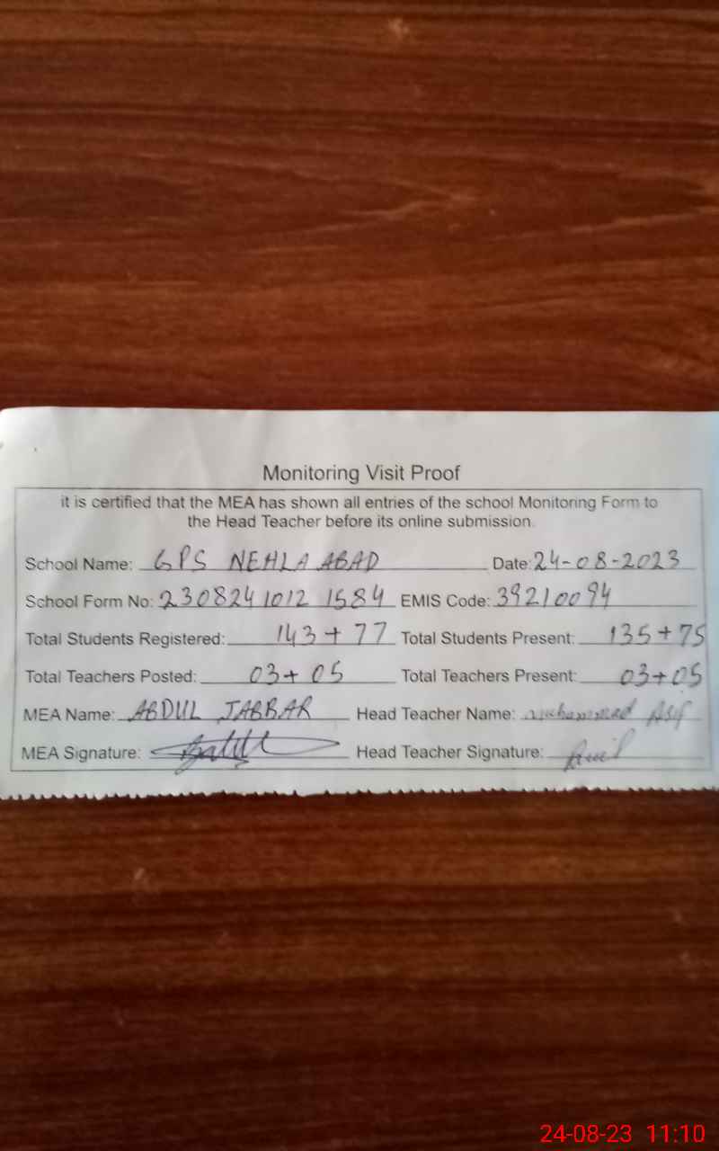 | EMIS Code: 39210094 | Name of School: GPS NEHLA ABAD P/O DHUPAI | |||