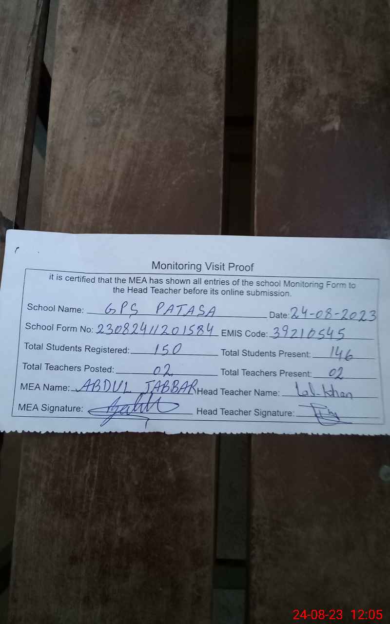 | EMIS Code: 39210454 | Name of School: GPS PATASA P/O DHUPAI | |||