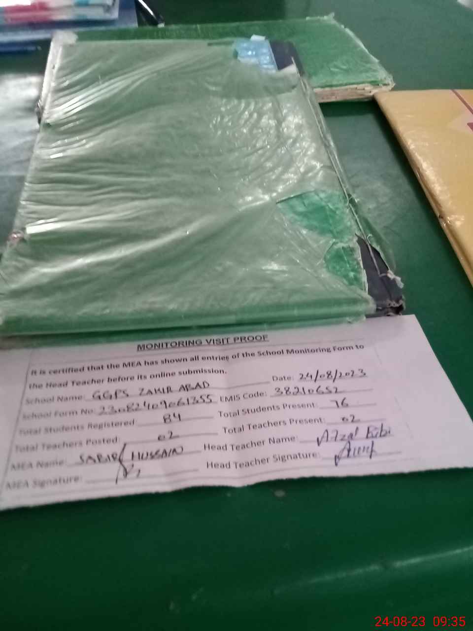 | Attendance Register | Head Teacher | MEA with School | Visit Proof |