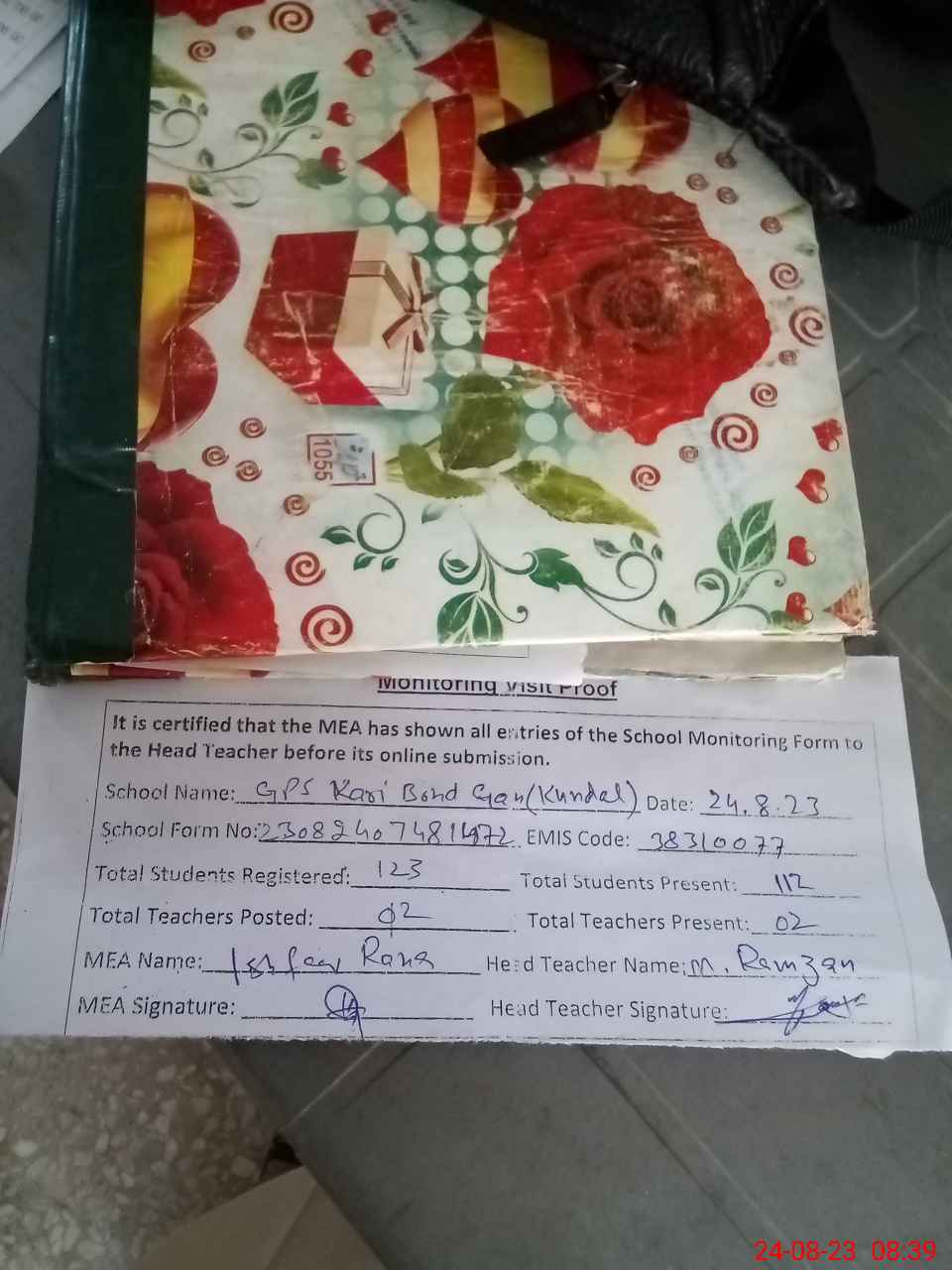 | EMIS Code: 38310077 | Name of School: GPS KARI BOND GAN PO KANDAL ISA KHEL | |||