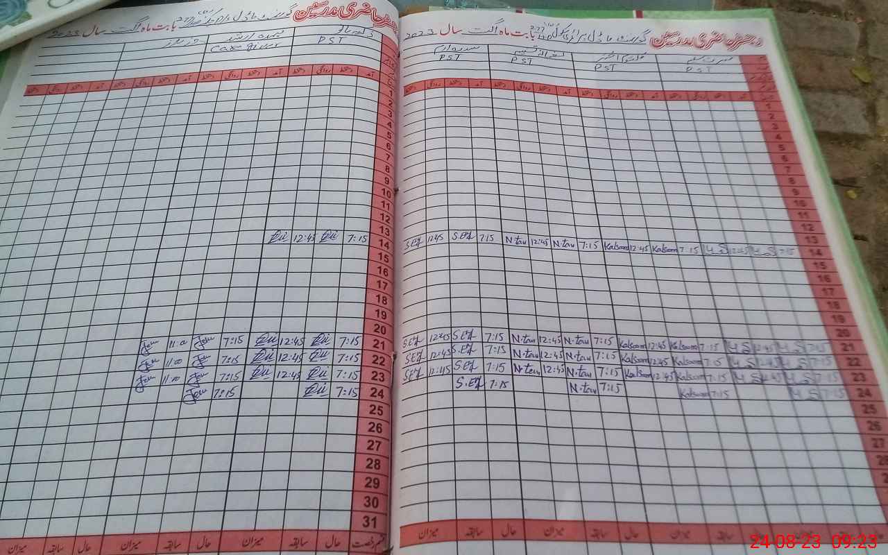 | CNIC | Full Name | Designation | R/C | Absence During Last Calender Month |