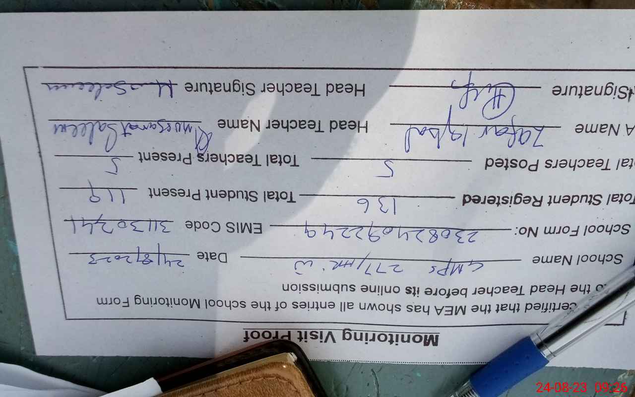 | Name: MU**** SA**** Designation: (School Headmaster's/Headmistress's) PTC/JV Phone/Cell Number: 03**** |