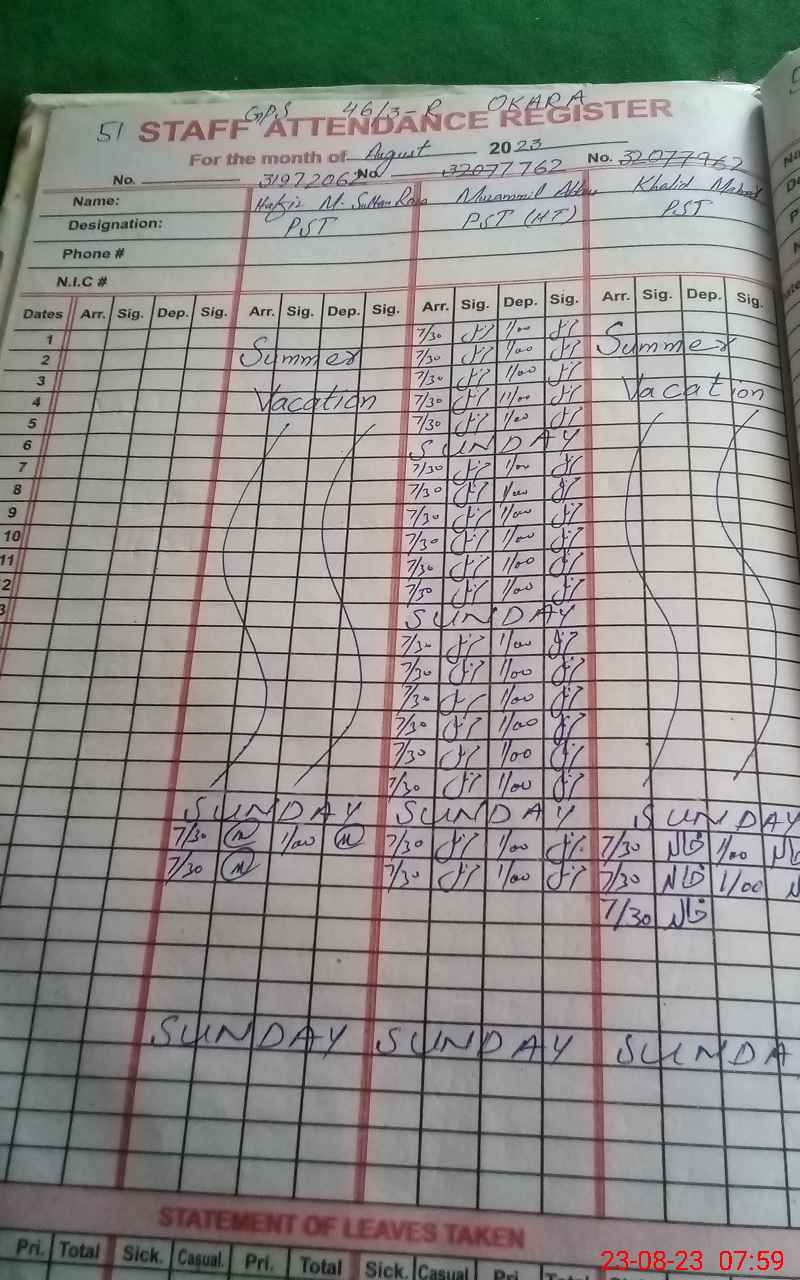 | 35**** | Ha**** Mu**** Su**** Ra**** | PST | Regular | 0 | 0 | 0 | 0 | 0 | 0 | 0 | 0 | 0 | Absent (Un-Authorized) |