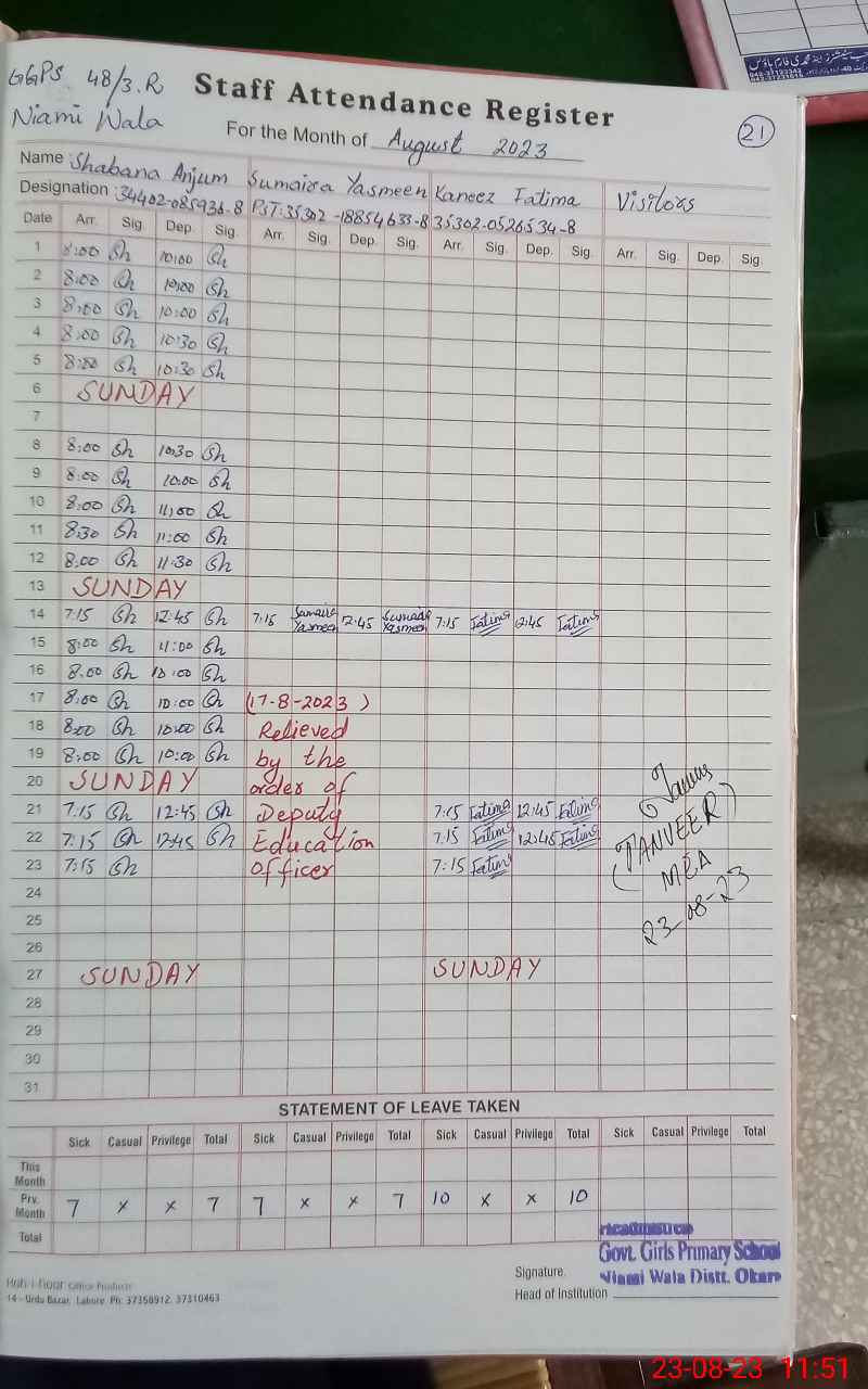 | Name: Ka**** Fa**** Designation: (School Headmaster's/Headmistress's) PST Phone/Cell Number: 03**** |