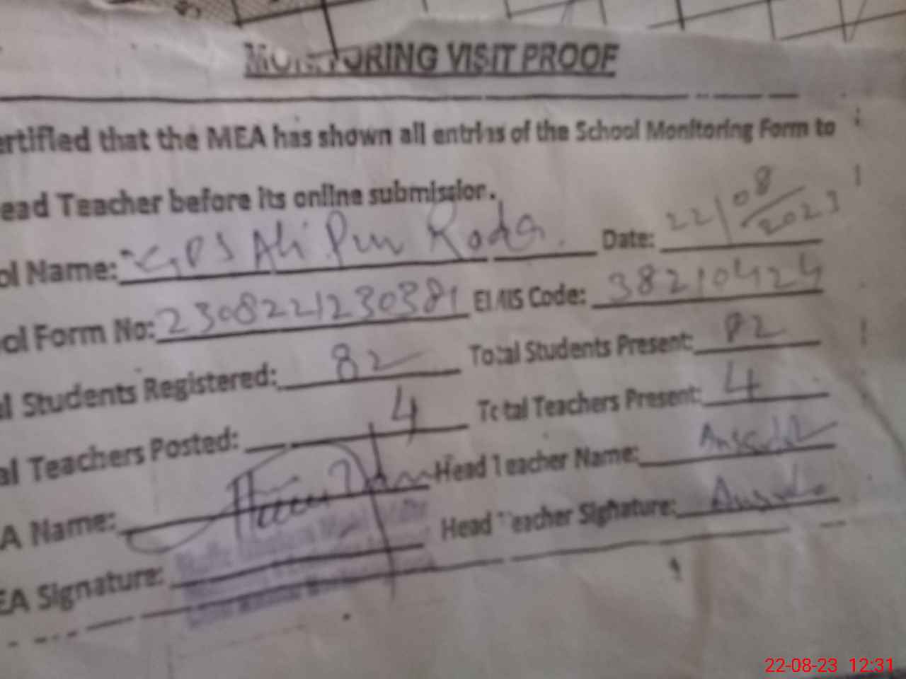 | EMIS Code: 38210424 | Name of School: GPS ALI PUR RODA | |||