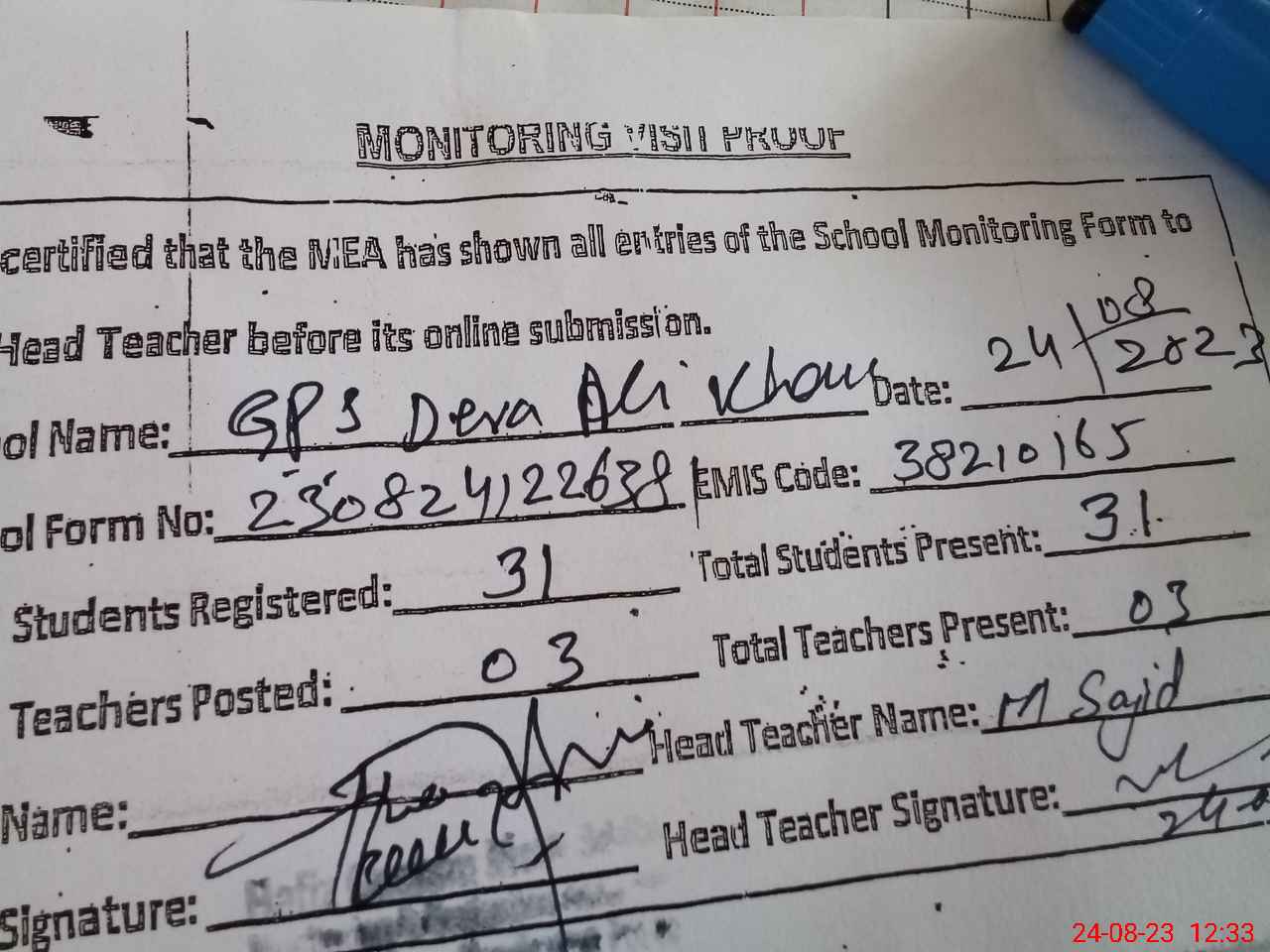 | EMIS Code: 38210165 | Name of School: GPS DERA ALI KHAN | |||