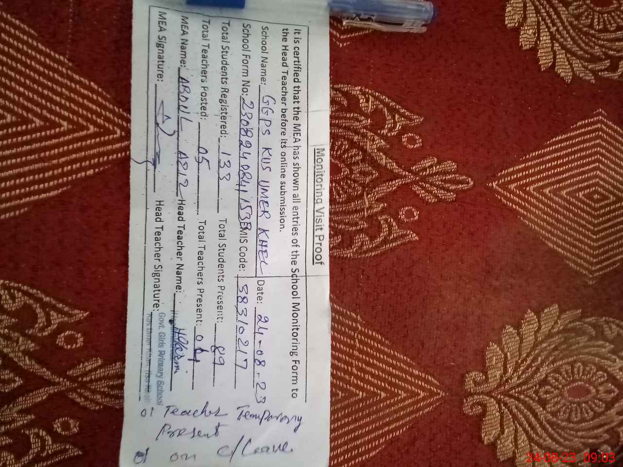 | EMIS Code: 38310217 | Name of School: GGPS KUS UMER KHEL | |||