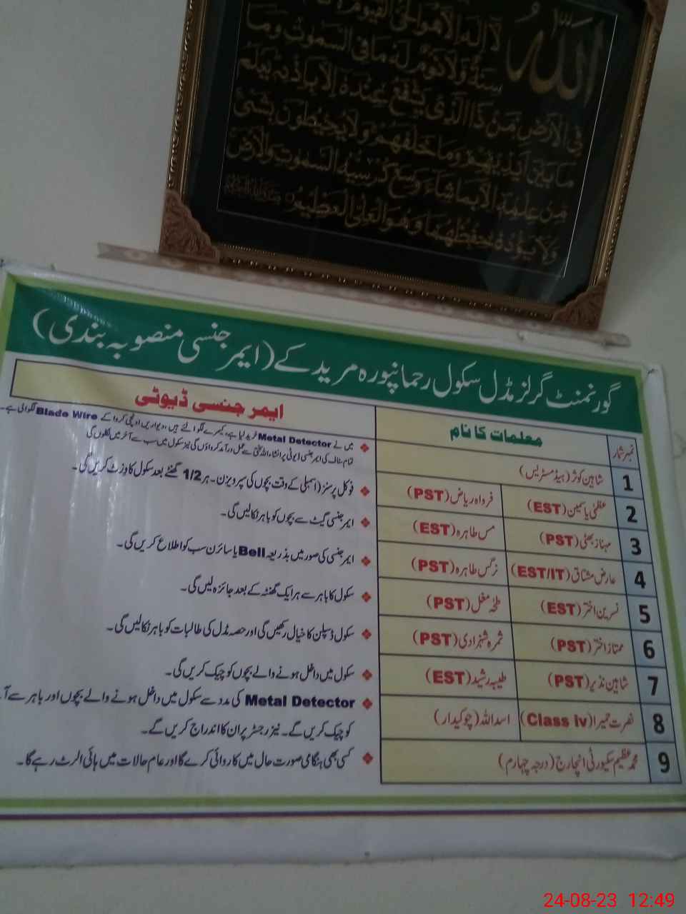 | Certified that this School was Inspected by the Undersigned MEA/DMO Today and the Information Stated Above is as Per Record. | |||||