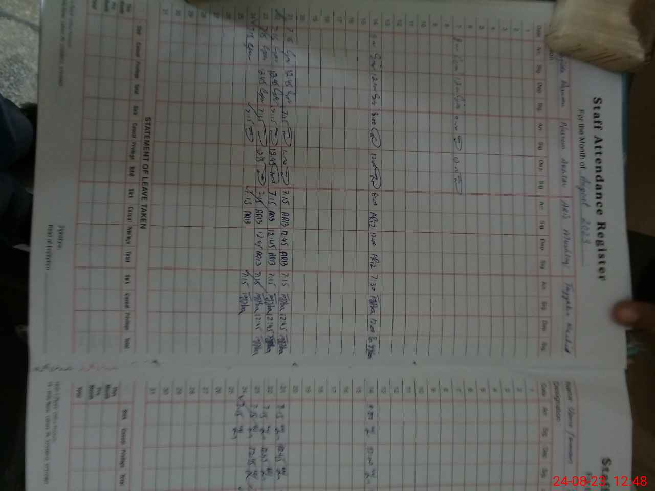 | Leave | Duty | Absent | Maternity | Medical | Ex- Pak |