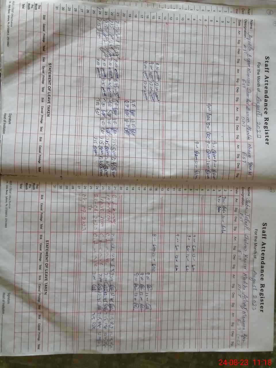 | Name: QU**** SA**** Designation: (School Headmaster's/Headmistress's) S H M Phone/Cell Number: 03**** |