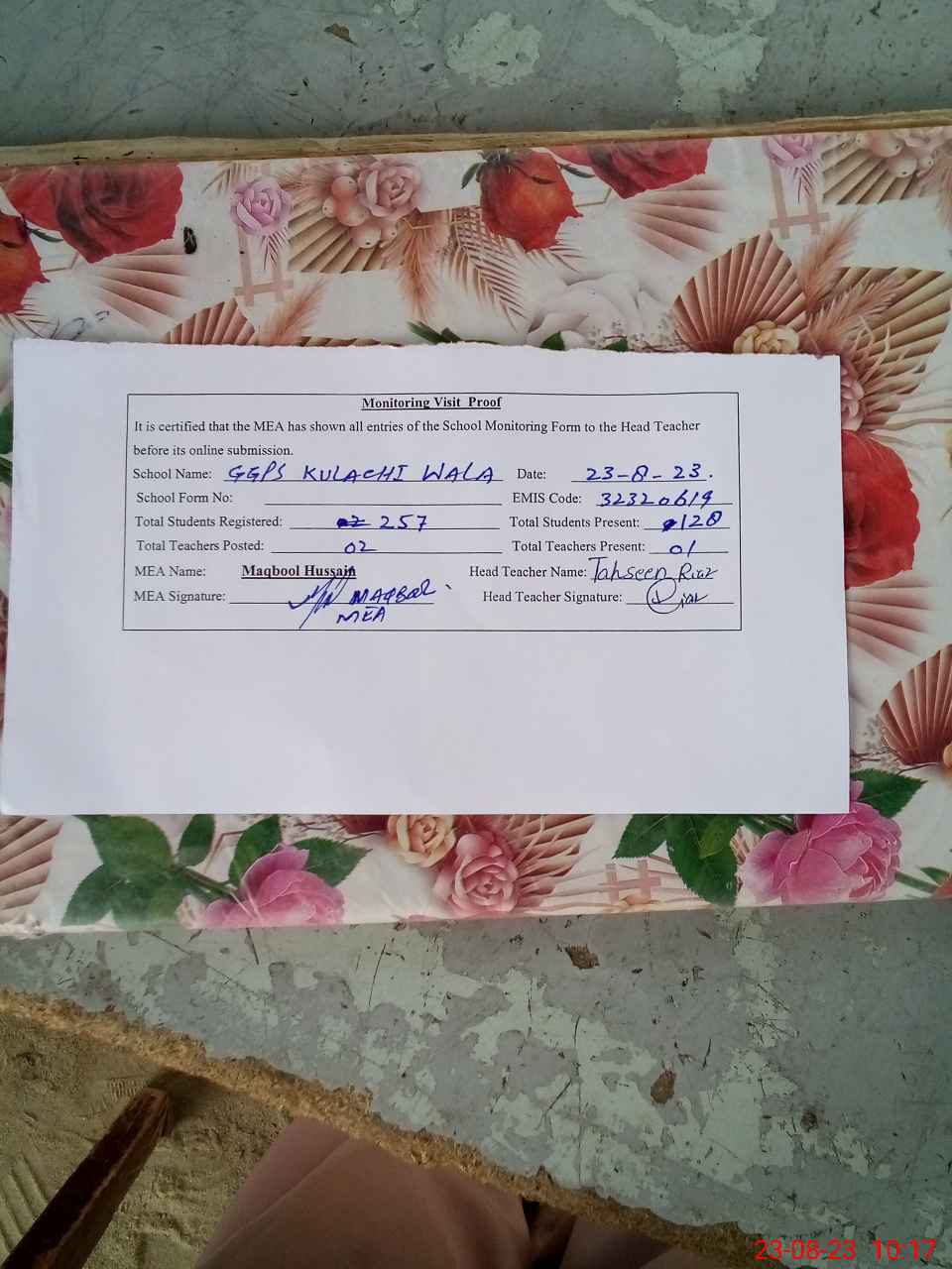 | EMIS Code: 32320619 | Name of School: GGPS KOLACHI WALA | |||