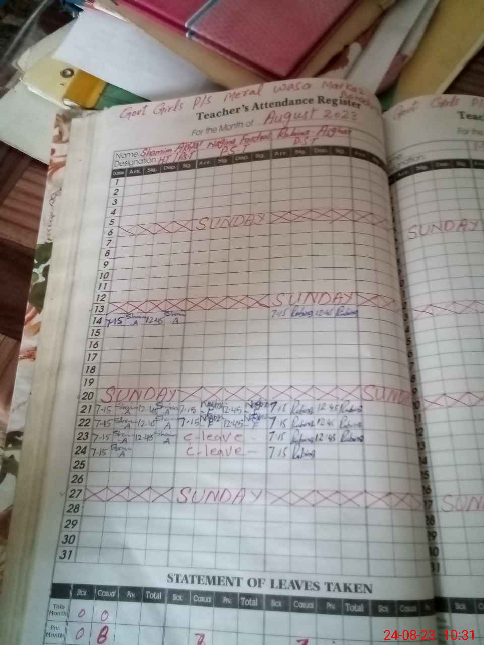 | 31**** | Na**** Fa**** | PST | Regular | 0 | 0 | 0 | 0 | 0 | 0 | 0 | 0 | 0 | Casual |