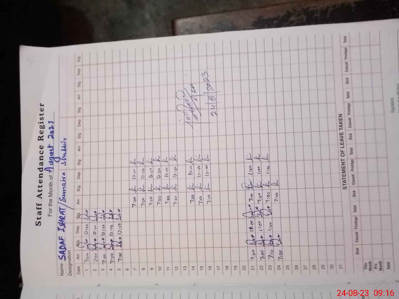 | Name: SA**** IS**** Designation: (School Headmaster's/Headmistress's) Headmistress Phone/Cell Number: 03**** |