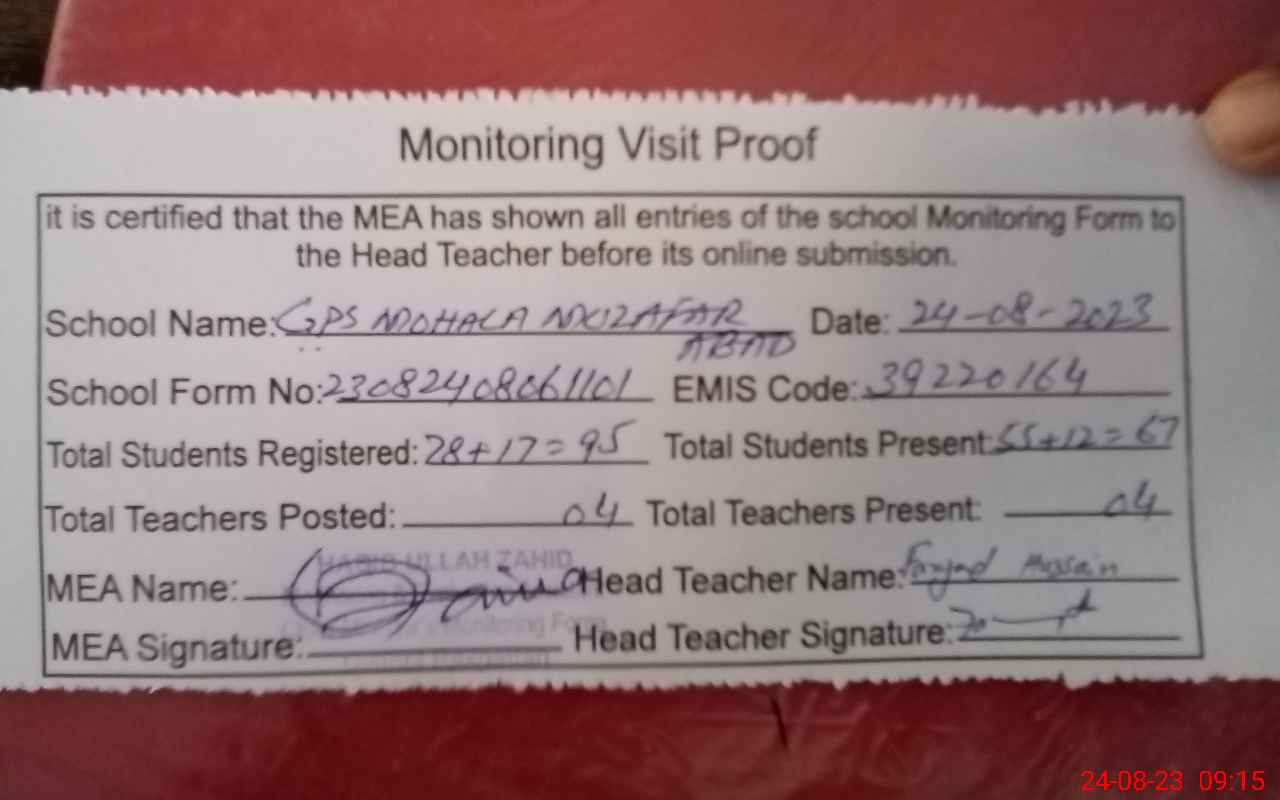 | EMIS Code: 39220164 | Name of School: GPS MOHALA MUZAFFAR ABAD | |||